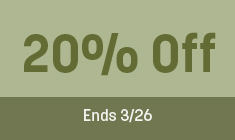 *20% off offer effective 3/13/26 - 3/26/26. Percentage off the original price. Cannot be combined with other offers or used on prior purchases. Not redeemable for cash. Void where prohibited by law.