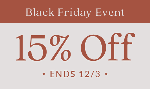 *15% off offer effective 11/5/25 - 12/3/25. Percentage off the original price. Cannot be combined with other offers or used on prior purchases. Not redeemable for cash. Void where prohibited by law.